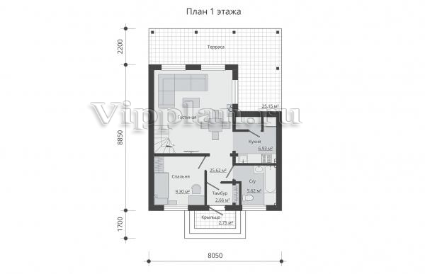 | Размеры дома: | 8.05м×11.05м |